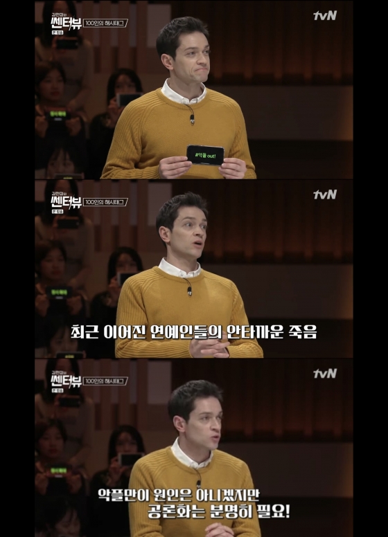 2일 오후 방송된 tvN 시사·교양 프로그램 '김현정의 쎈터 : 뷰'에서는 악플에 대한 생각을 밝히는 다니엘의 모습이 담겼다.