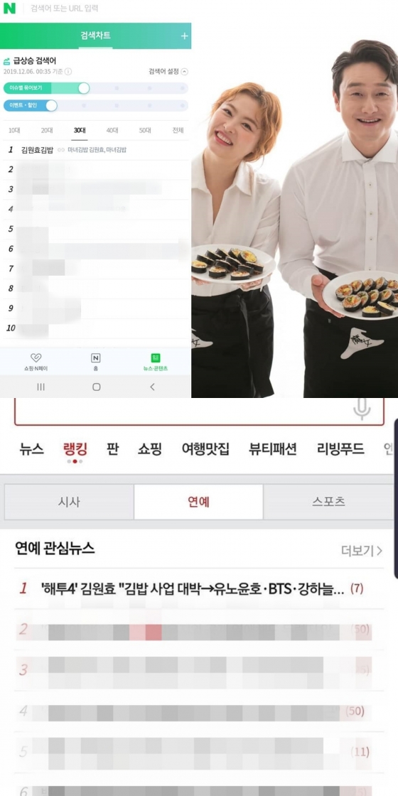 한편 김원효는 지난 5일 방송된 KBS2 '해피투게더 4'에 출연해 현재 운영 중인 김밥집에 대한 이야기를 전했다.