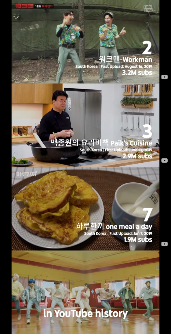 새로운 스타 크리에이터에는 ▲7위 하루 한 끼(one meal a day) 2019년 1월 7일 첫 업로드 후 현재 구독자 수 190만 명 ▲3위 백종원의 요리 비책(Paik's Cuisine) 2019년 6월 10일 첫 업로드 후 현재 290만 명 ▲2위 워크맨 2019년 8월 16일 첫 업로드 후 현재 구독자 수 320만 명을 기록하는 기염을 토했다