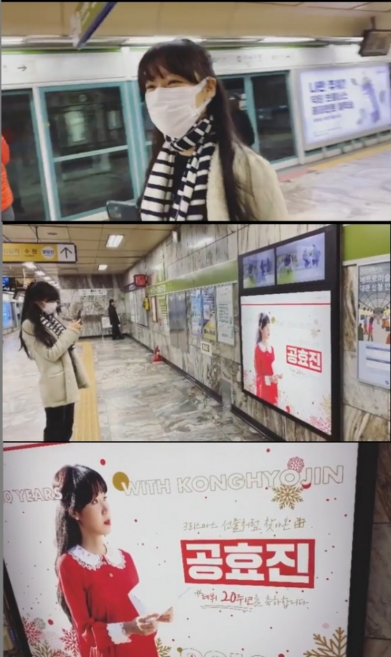 공개된 영상 속 공효진은 하얀색 마스크를 끼고 강남구청역을 걷고 있다. 도착한 곳은 공효진의 데뷔 20주년을 축하하는 팬들의 지하철 광고 앞으로, 눈웃음을 짓고 사진을 촬영해 행복해하는 모습을 보였다.