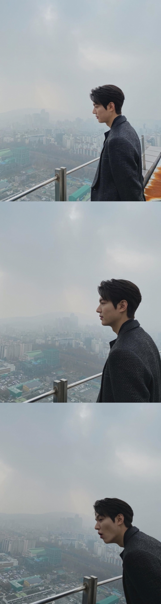 공개된 사진 속 이민호는 미세먼지로 인해 뿌옇게 된 풍경을 구경하고 있다. 그는 풍경을 구경하다가 놀란 듯한 표정을 짓기도 했다.