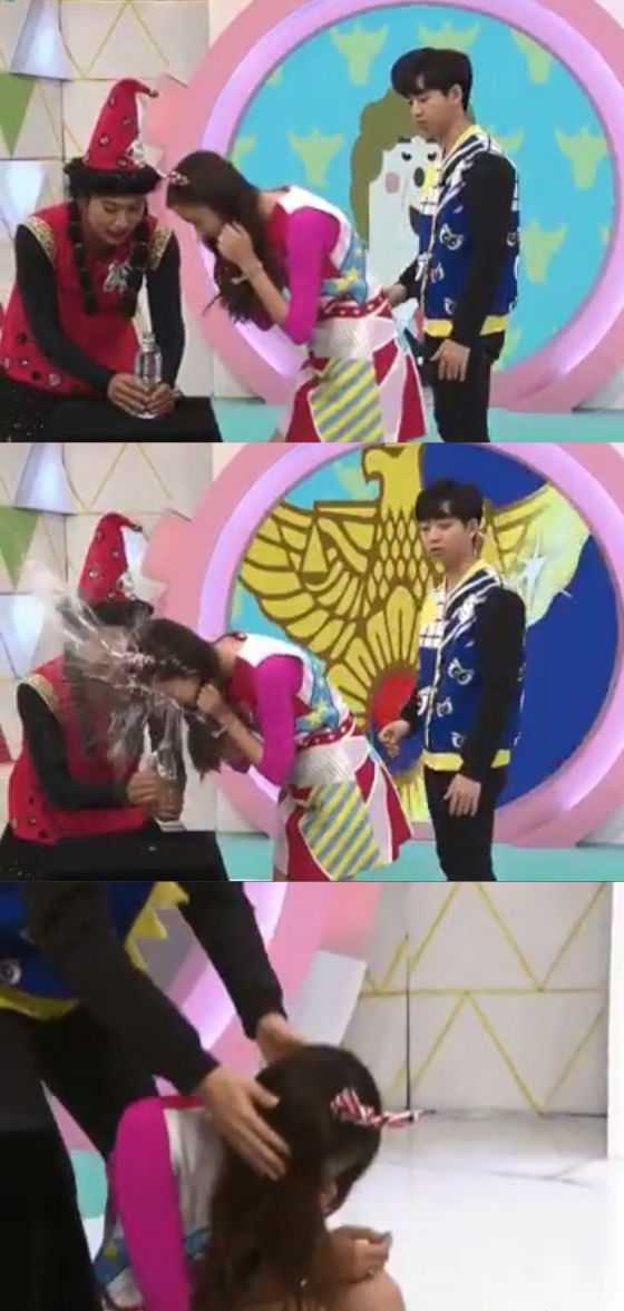 논란은 여기서 그치지 않았다. 또 다른 영상에서 박동근이 '보니하니' 12대 하니 에이프릴 진솔의 눈을 향해 물병의 물을 세차게 발사하는 모습이 담겼던 것. 박동근은 뚜껑이 열린 물병을 들고 진솔을 자신의 쪽으로 오게 했다. 진솔이 다가오자 박동근은 그대로 물병을 세차게 쥐며 진솔의 눈에 물을 뿌렸다. 이후 진솔은 비틀거리며 쓰러져 눈을 부여잡는 모습을 보여 시청자를 격노케 했다.