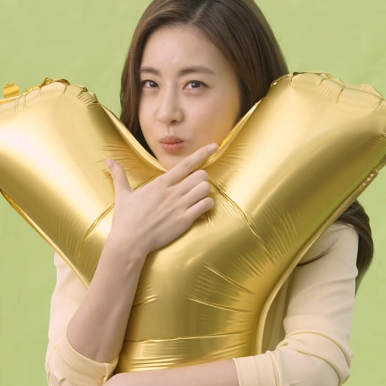 공개된 사진 속 강소라는 알파벳 'Y'자 풍선을 들고 입을 오므리고 있다. 특히 손으로 브이자를 만들어 귀여움을 보여줬다.
