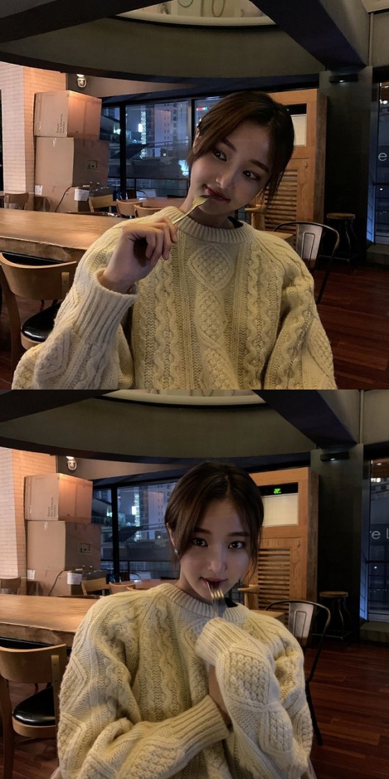 공개된 사진 속 연우는 베이지색 니트를 입고 포크를 입에 물고 귀여움을 보여줬다. 어두운 조명에도 드러나는 사슴 같은 눈망울이 눈에 띈다.