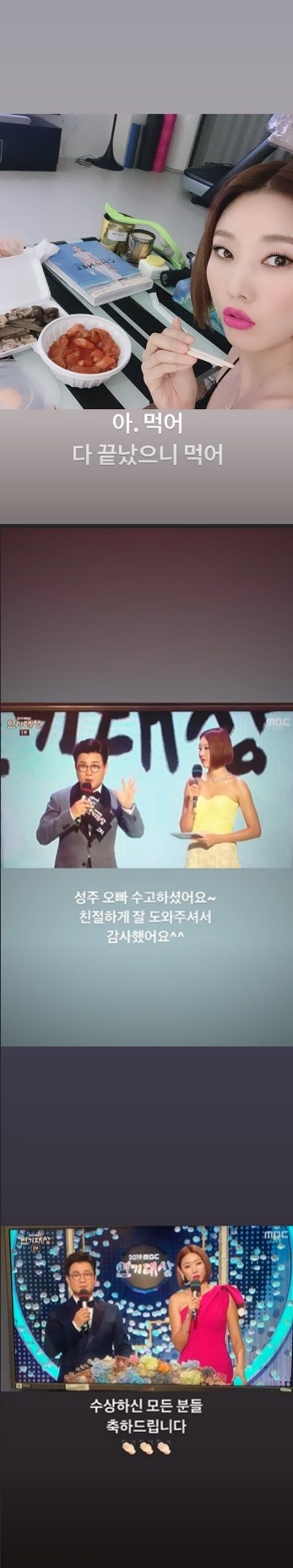 이어 자신의 스토리에 "성주 오빠 수고하셨어요~ 친절하게 잘 도와주셔서 감사했어요^^"라는 글과 "수상하신 모든 분 축하드립니다"라고 전해 훈훈함을 보여줬다.