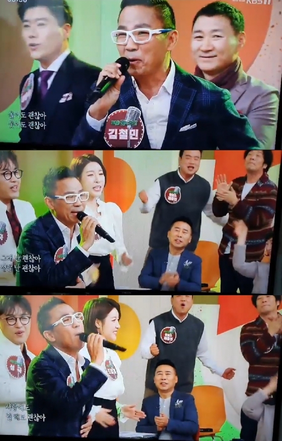공개된 영상은 김철민이 지난 1일 KBS 1TV '아침마당'에 출연한 것으로, 자신의 신곡 '괜찮아'를 부르고 있는 모습이 담겼다.