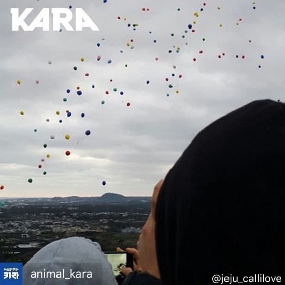 카라는 "오늘 새벽 청정 지역 제주 해역에 수없이 많은 색색의 풍선이 날아올랐다"라며 "웃고 떠들며 기쁜 새해를 기원하며 날려 보낸 색색의 풍선들. 말릴 새도 없이 어처구니없고 어리석은 행위가 저질러졌다"라고 밝혔다.