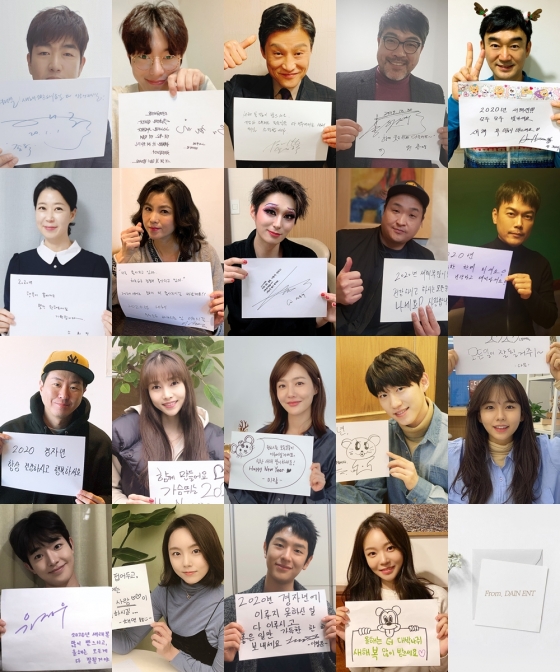 새해 덕담을 친필로 정성껏 적은 연하장을 들고 미소를 짓고 있는 이종혁을 시작으로 윤현민, 박정학, 이원종, 정희태, 소희정, 이승연, 전동석, 구성환, 강승완, 이현균, 문보령, 미람, 연제형, 정다은, 유정우, 민채연, 이정준, 이유진 등 다인엔터테인먼트 배우들은 행복과 건강을 기원하는 마음을 담아 희망의 메시지를 전달했다.
