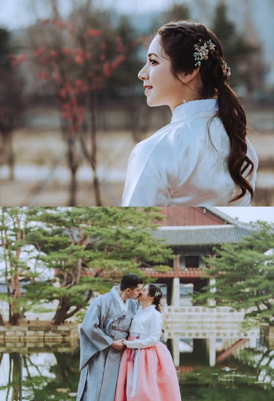 공개된 사진 속 아비가일은 분홍빛 한복을 입고 단아한 자태를 뽐내고 있다. 특히 미군 남자친구도 파란색 한복을 입어 '대한 외국인'들의 한국 사랑을 보여줬다.