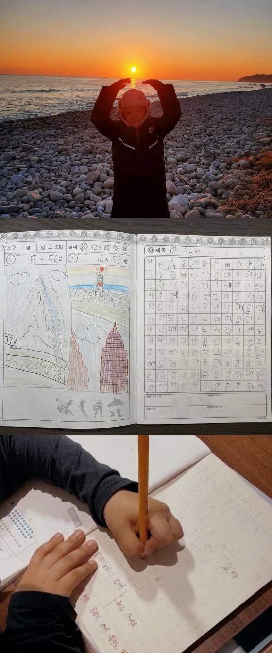 공개된 동영상 손주안 군은 일기를 쓰고 있다. 주안 군은 "일기 잘 못 쓰는데"라고 말해 웃음을 안겼다.