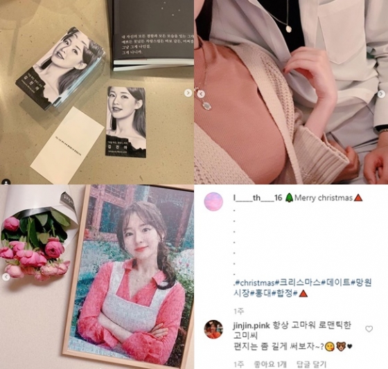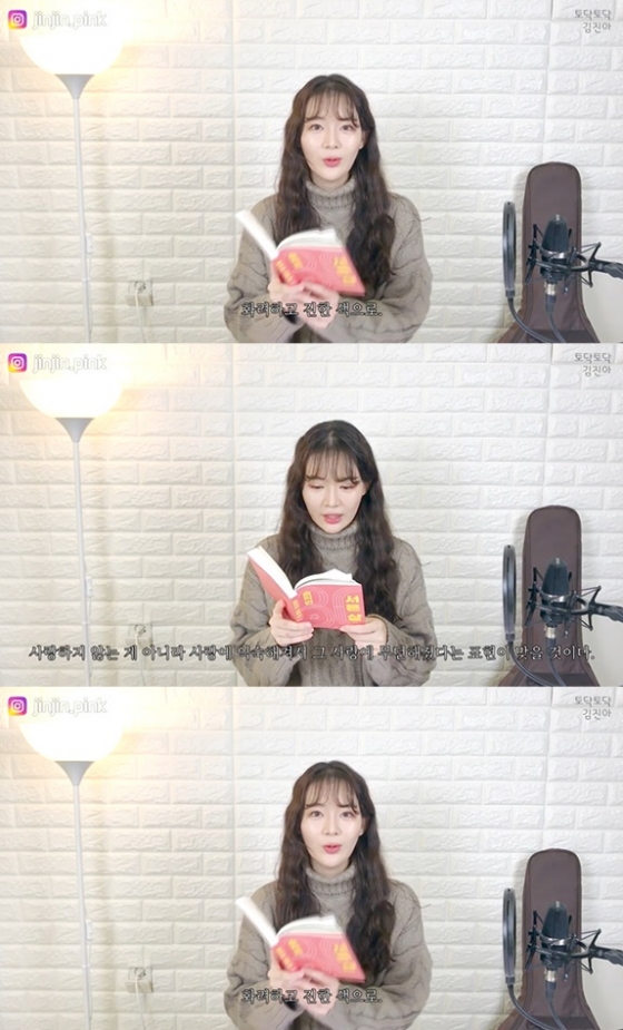 이어 김진아는 "목표나 꿈, 관계, 사랑에 대한 박도 작가님의 아주 그냥 솔직한 글이라 진진피플과 나누면 좋을 것 같아 들고 왔답니다. 사랑하는 진진피플 새해에는 조금 덜 울고 조금 더 웃는, 그렇게 조금 더 행복한 한 해 보내요 우리"라고 덧붙였다.