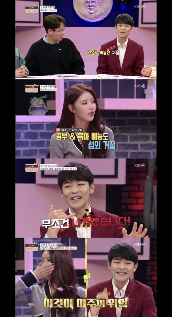 이에 강성태는 "제가 연예인도 아니고 관찰 예능 이런 걸 한 번도 안 했다. 공부나 육아 관련 예능 섭외가 많이 들어왔었는데 다 거절했었다. 근데 '슬기로운 어른이 생활' 미주 씨 나온다는 얘기를 듣자마자 나가겠다고 했다. 기어서라도 가겠다고"라며 미주에 대한 넘치는 팬심을 표했다.
