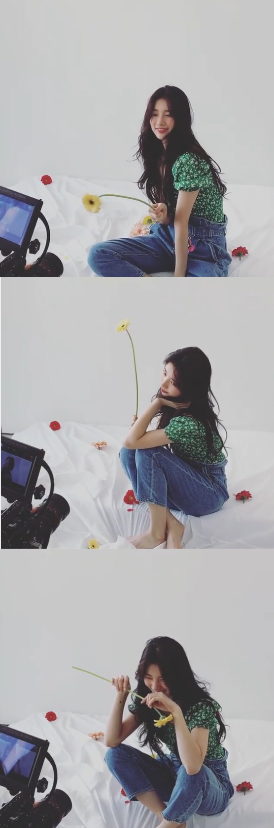 공개된 동영상 속 수지는 화보를 찍고 있다. 노란색 조화를 들고 머리를 풀어 헤친 후 역동적인 포즈를 취하고 있다. 특히 익살스러운 표정을 지어 촬영 현장을 화기애애하게 만들었다.