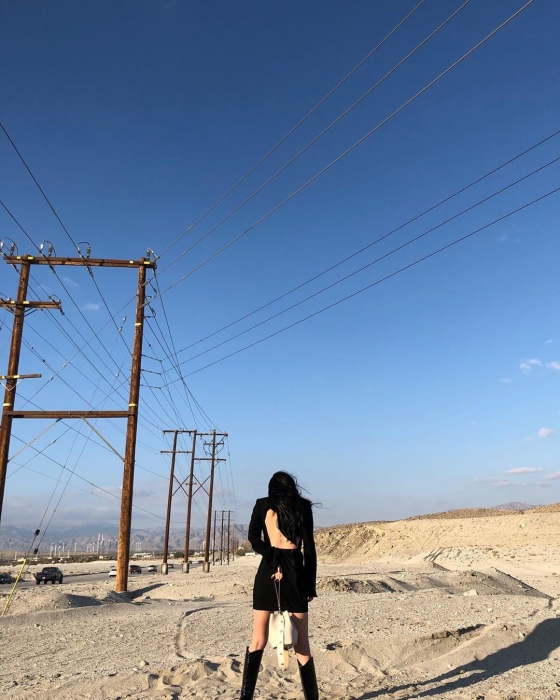 이에 네티즌들은 "촬영하나요? 대충 I-10 프리웨이 어디겠죠?", "세상에 이렇게 아름다울 수가 없습니다", "사막에 한 송이 흑장미신가요? 느낌 굿굿♡" 등 댓글을 달았다.