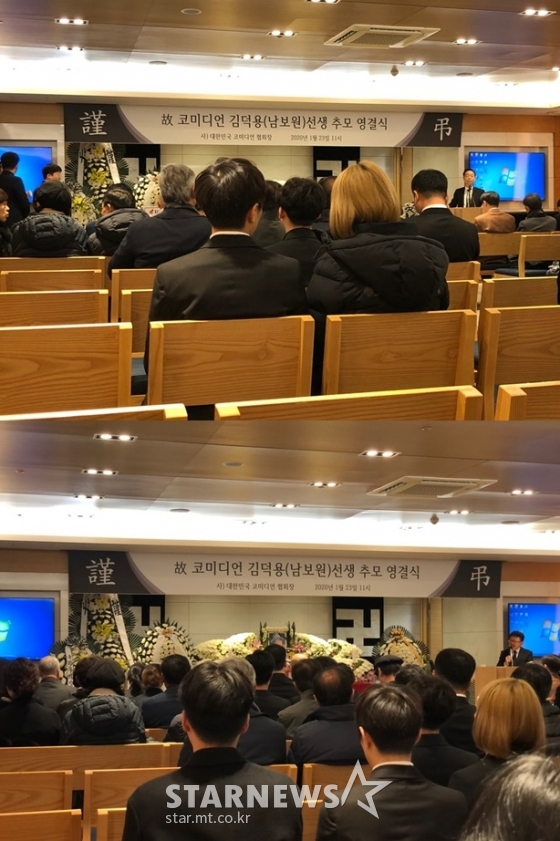 후배들은 약력 소개와 생전 방송의 모습을 전하며 남보원에 대해 "후배들을 위한 선배였다"고 입을 모았다. 엄용수는 추도사를 읽으며 "고인은 오늘 하늘나라의 코미디 극장에 데뷔했다. 남보원 선생님은 행복하셨다. 거의 모든 사람이 이루지 못한 대단한 상을 휩쓰셨다. 코미디영화, 전쟁영화, CF도 싹쓸이하셨다. 남쪽에 하나밖에 없는, 세계에 하나밖에 없는 존재 '남보원'이다. 선배님, 기쁜 마음으로 남보원 선생님 모든 짐을 내려놓으시고 안녕히 가십시오"라고 생전 모습을 기리며 오열했다. 김학래 역시 눈물을 보이고 잠시 말을 잇지 못했다.