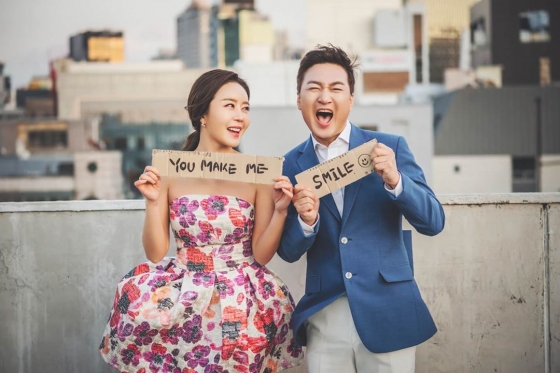 공개된 사진 속 이상이는 박동빈과 함께 'YOU MAKE ME SMILE(당신이 나를 웃게해요)'라고 적힌 플래카드를 들고 환하게 웃고 있다.