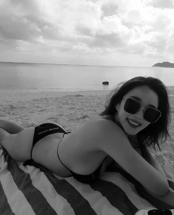 사진 속 레이양은 비키니 차림으로 선글라스를 낀 채 카메라를 응시하고 있다. 특히 그녀의 완벽한 뒤태가 시선을 사로잡는다.