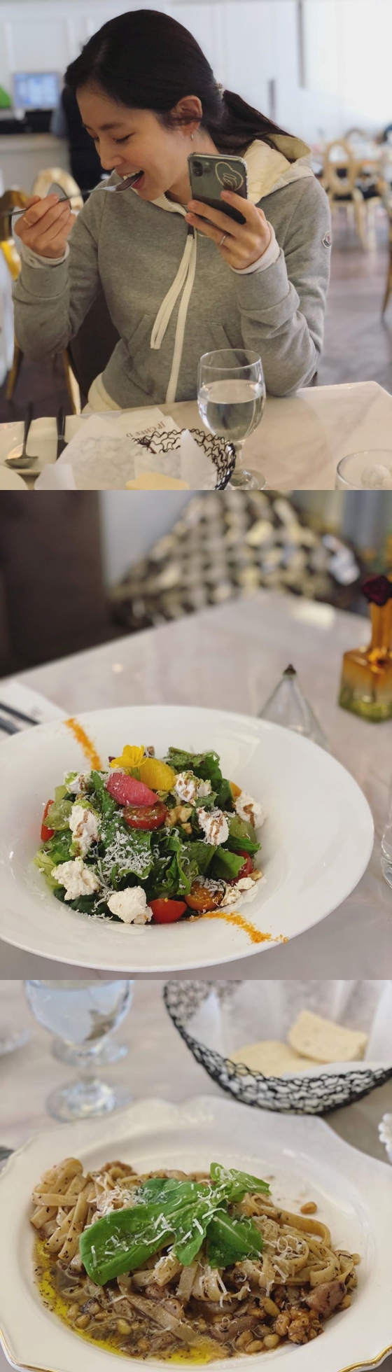공개된 사진 속 한채아는 한 레스토랑에서 밥을 먹고 있다. 특히 맞지 않는 케이스를 낀 핸드폰을 들고 있어 웃음을 유발했다.