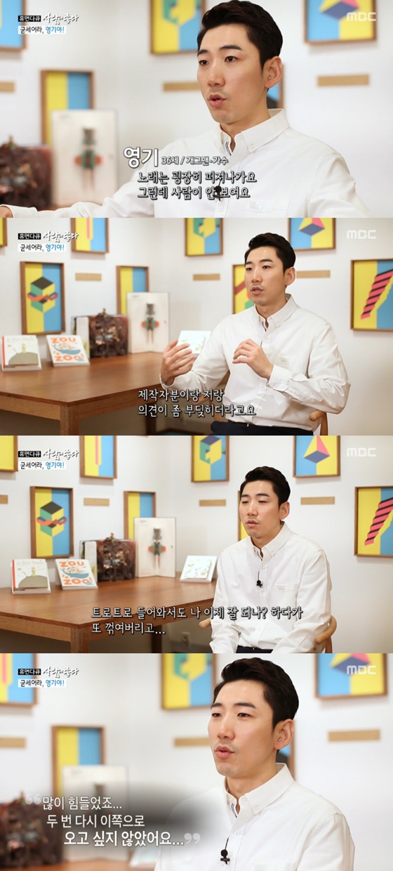 개그맨 겸 트로트가수 영기(권영기)가 트로트가수로 도전, 연거푸 실패하면서 힘들었던 속내를 털어놓았다.