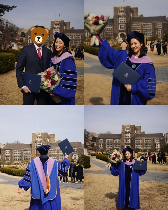 이어 "졸업은 남편이 하고 기분은 내가 내고. 고생 많았어요 정말 대단해 (근데 박사모는 언제부터 찐빵 모자가 된 건가요)"라며 "그동안 열심히 공부해준 남편. 우리 박사님 졸업 축하. 찐빵 모자 쓰니 귀여워"라고 하며 남편을 축하했다.