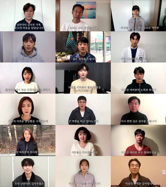 이어 출연진들은 "코로나19 예방을 위해 최선을 다하고 계신 의료진 여러분, 여러분들의 노고와 헌신에 깊은 감사를 드립니다. 저희 낭만닥터 김사부팀 역시 촬영 과정에서 겪은 간접경험들을 통해서 의료진 여러분의 힘든 과정을 느껴보았습니다. 의료진 여러분의 노력과 희생이 지금의 어려운 현상황을 극복하는데 큰 역할을 하고 있다는 것에 다시 한번 깊은 감사를 드립니다"라고 말했다.
