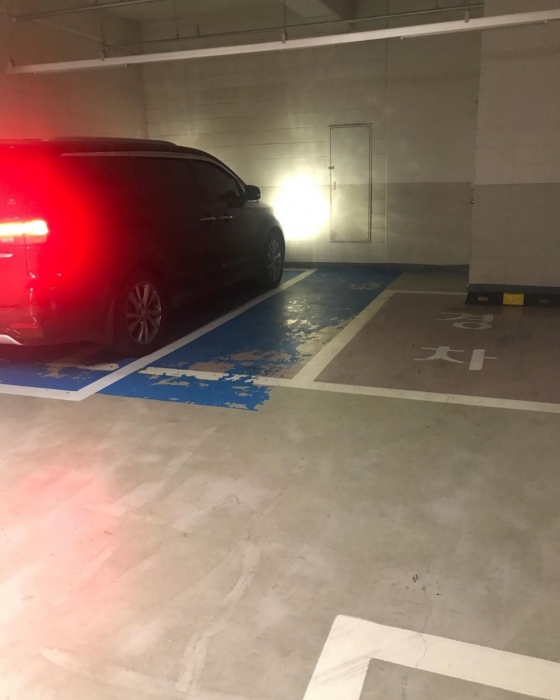 공개된 사진 속에는 파란색으로 페인트 칠해진 주차 구역과 경차 글씨가 쓰여있는 주차구역이 담겨 있었다.