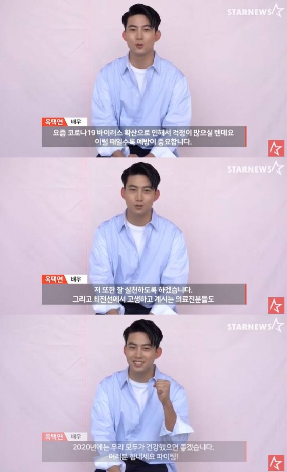 옥택연은 18일 스타뉴스가 진행하는 코로나19 스타 응원 메시지 릴레이에 참여했다.