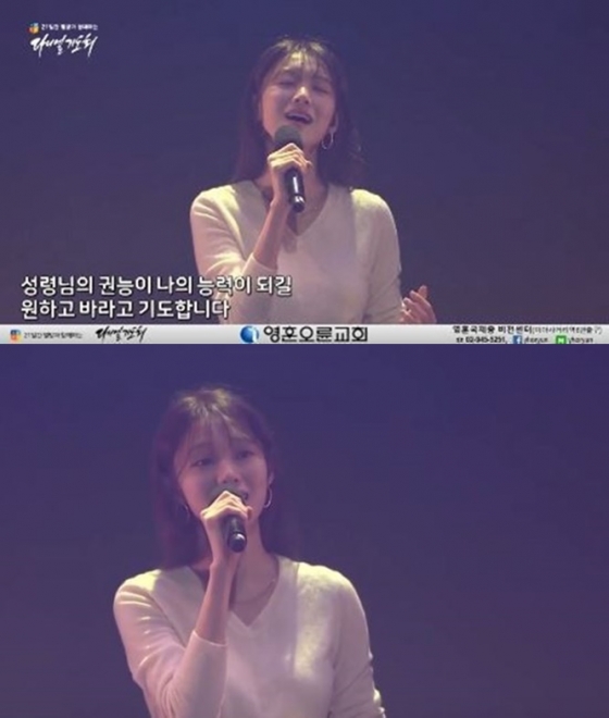 이어 "영상을 통해서도 예배할 수 있게 하신 하나님의 은혜에 감사드린다"며 "이럴 때일수록 더욱 영상특별기도회를 통해 이 땅의 두려움이 가득한 곳곳에 소망의 빛 하나님의 사랑을 전할 수 있는 모두가 되기를 간절히 기도 하겠다"면서 찬송가 '원하고 바라고 기도합니다'를 불렀다.