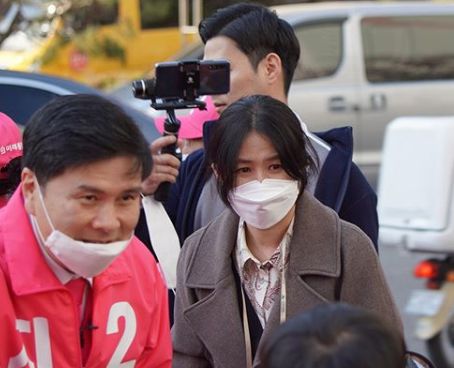 90년대 인기 여배우 심은하(48)가 남편의 선거 유세에 깜짝 등장, 눈길을 모았다.