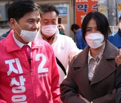 지씨는 자신의 SNS에 "제 아내도 당원여러분들과 저를 지지해 주시는 분들께 인사드리기 위해 자리를 함께 했다"고 이날 심은하의 동행 사실과 함께 여러 장의 사진을 게재했다.