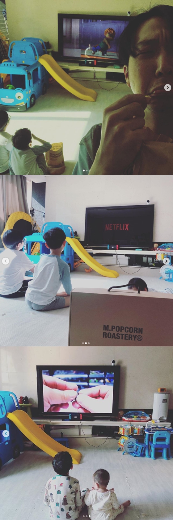 하하는 7일 자신의 인스타그램에 "나도 이렇게 답답한데 너흰 오죽하겠니. 가끔 팝콘에 영화 한 편 틀어주면 하루가 또 갑니다. 아오. 얼른 좋은 날 오기를 간절히 기도해봅니다. 가라 코로나 #우리집영화관 #꺼져라코로나 #똘똘뭉쳐이겨내세"라는 글과 함게 세 장의 사진을 게재했다.