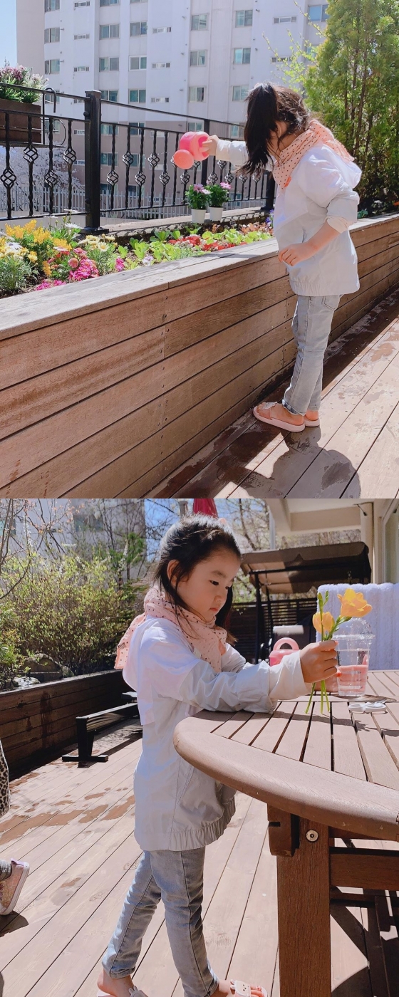 공개된 사진 속 소이현의 딸 하은 양은 꽃과 채소가 심겨 있는 테라스에 물뿌리개로 물을 주고 있다. 이어 꽃을 꺾은 후 투명한 컵에 심으려고 하는 모습을 공개해 봄이 물씬 느껴지는 분위기를 자아냈다.
