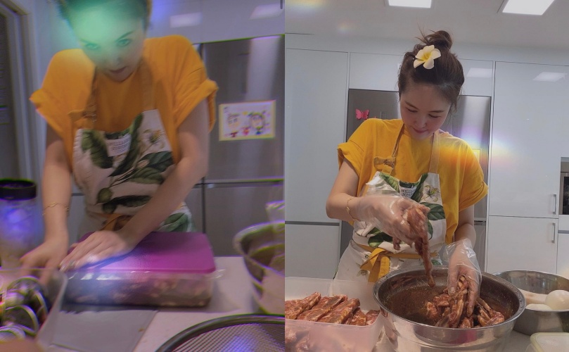 사진 속 장영란은 요리를 하다 눈을 치켜뜨고 카메라를 보고 있다. 사진 필터와 장영란의 표정은 무서운 분위기를 자아낸다.