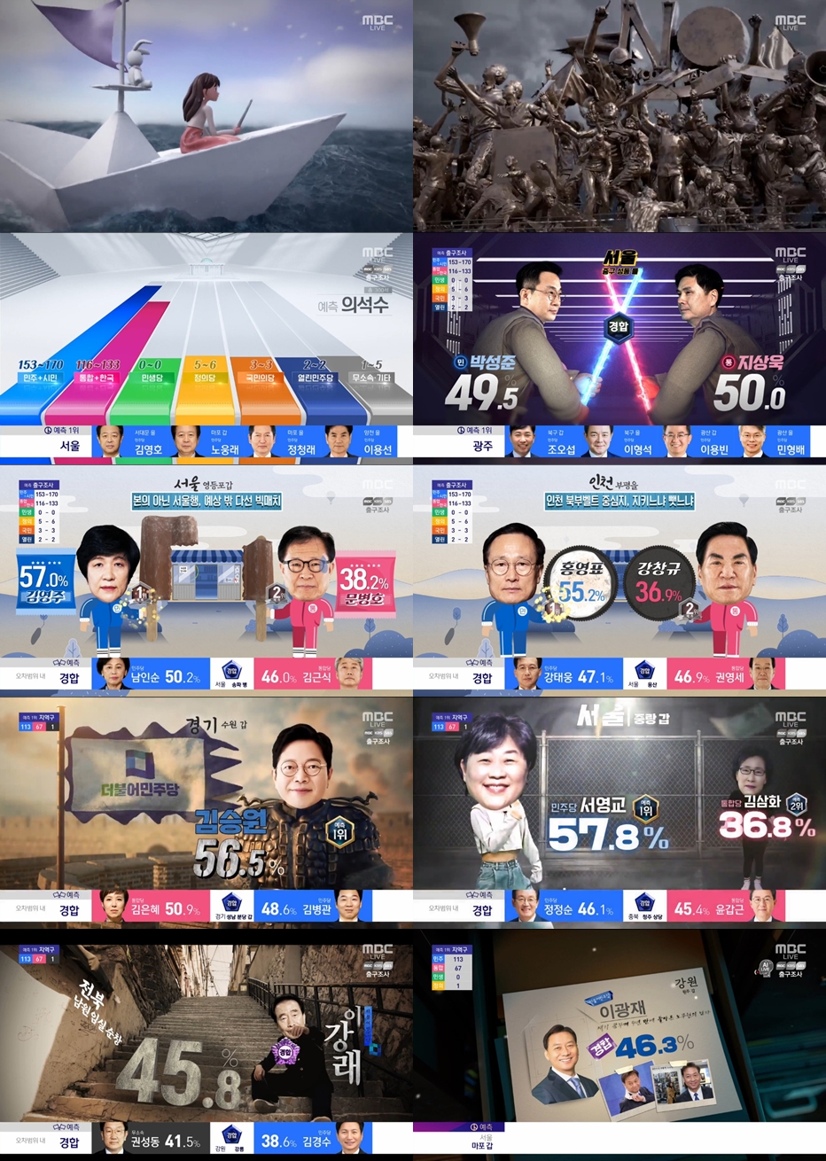 이날 '선택 2020'에서 공개된 컴퓨터 그래픽 이미지는 이번 MBC 선거방송에서 또 다른 볼거리를 제공했다. 크림 나누기, 쌍쌍바 나누기 등 유쾌한 콘셉트의 CG와 함께 후보 간의 대결을 상징하는 스타워즈 CG, 그리고 요충지를 지키는 장군의 이미지를 이용한 요충지 CG, 댄스 CG, 올드보이 CG 등 시청자에게 보는 즐거움을 선사했다. 여기에 한강 전선, 낙동강 전선 CG 등 다양한 CG 기술로 출구조사 결과를 보다 시청자에게 효과적으로 전달했다.