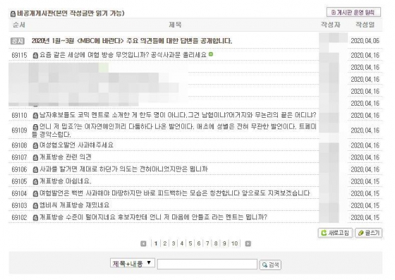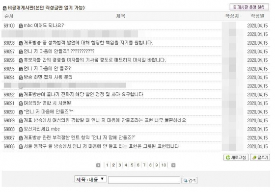 15일과 16일 MBC 시청자 게시판에는 제21대 국회위원 선거 개표방송 내용에 대한 항의글이 계속해서 올라오고 있다.