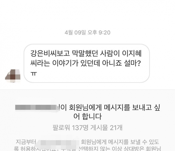 이후에도 강은비는 지난 17일 해당 연예인과 주고받은 카카오톡 메시지를 공개했다. 해당 과정에서 이지혜가 거론된 바 있다.
