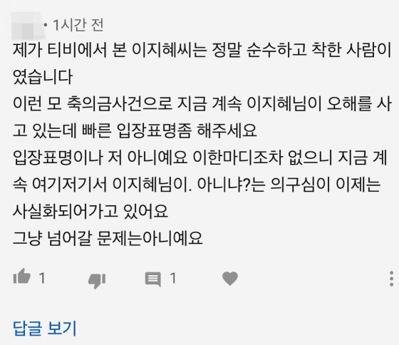 네티즌들은 "181818원 너지?", "강은비님 사건 181818원 당사자이신가요? 아니면 아니라고 해주세요. 다들 이지혜님이라고 알고 있던데요", "강은비 씨보고 막말했던 사람이 이지혜라는데 아니죠?", "빠른 입장표명을 해달라" 등의 메시지를 보냈다. 이에 이지혜가 직접 해명에 나선 것이다.