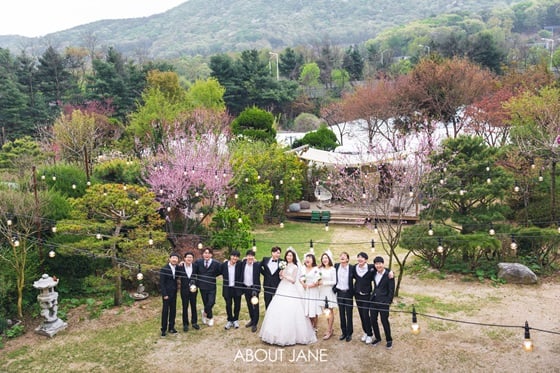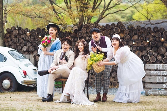 이날 공개된 웨딩 화보에는 웃는 모습이 아름다운 이 씨와 결혼을 앞둔 기쁨에 입을 다물지 못하는 정윤호의 모습이 담겨 있다. 또한 이상훈, 이수지, 이현정 등 동료 개그맨들이 함께해 자리를 빛냈다.