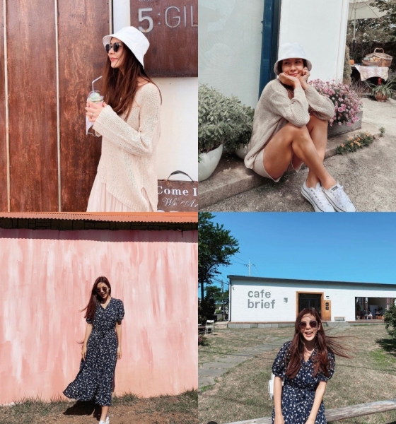 김준희는 지난 7일 자신의 인스타그램에 "제주도 카페투어 #주니는 신행 중"이라는 글과 함께 사진을 게재했다.
