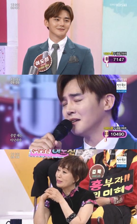 13일 방송된 KBS 1TV '아침마당'에서는 지난주에 이어 '도전! 꿈의 무대' 2승에 도전하는 이도진의 모습이 그려졌다. 힘들었던 어린 시절 누나들의 도움으로 가수의 꿈을 키웠다는 이도진은 이날 누나들을 위해 주병선의 '칠갑산'을 호소력 짙은 목소리로 열창했다.