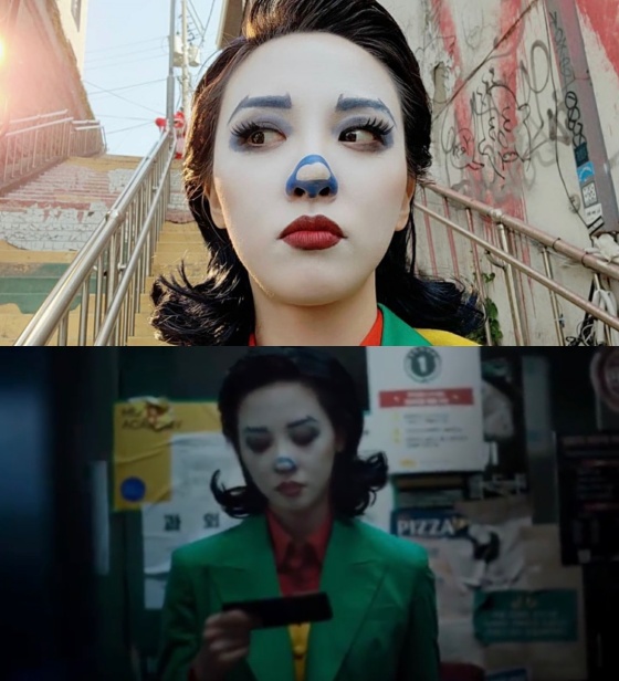 사진 속 김민아는 영화 '조커'의 '조커' 분장을 하고 있다. 과거 유튜브에서 '조커'를 연기해 '코커'라는 별명을 얻은 김민아는 이를 바탕으로 광고까지 접수했다.