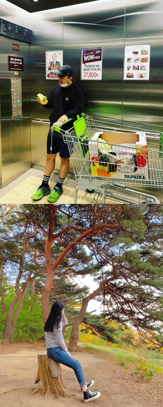 공개된 사진 속 정준은 카트를 잡고 바나나를 먹고 있다. 장을 다 본 듯 박스 포장을 한 모습에서 소탈함이 느껴진다.