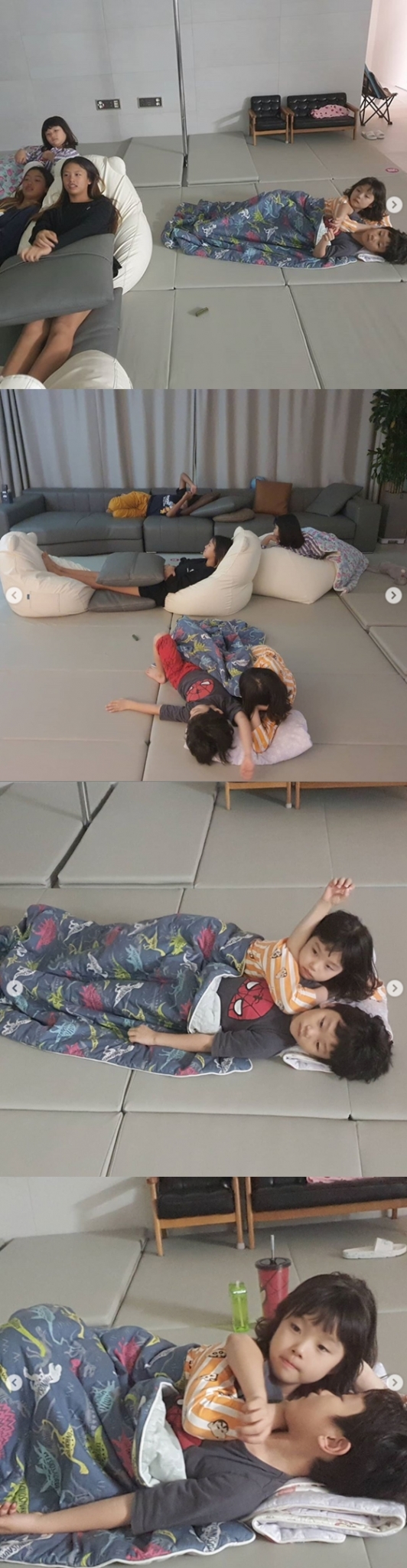 공개된 사진 속에는 드넓은 거실에 여기저기 널부러진 다섯 남매의 모습이 담겼다. 특히 다정하게 서로를 안고 있는 설아와 시안이의 모습이 눈길을 끈다.