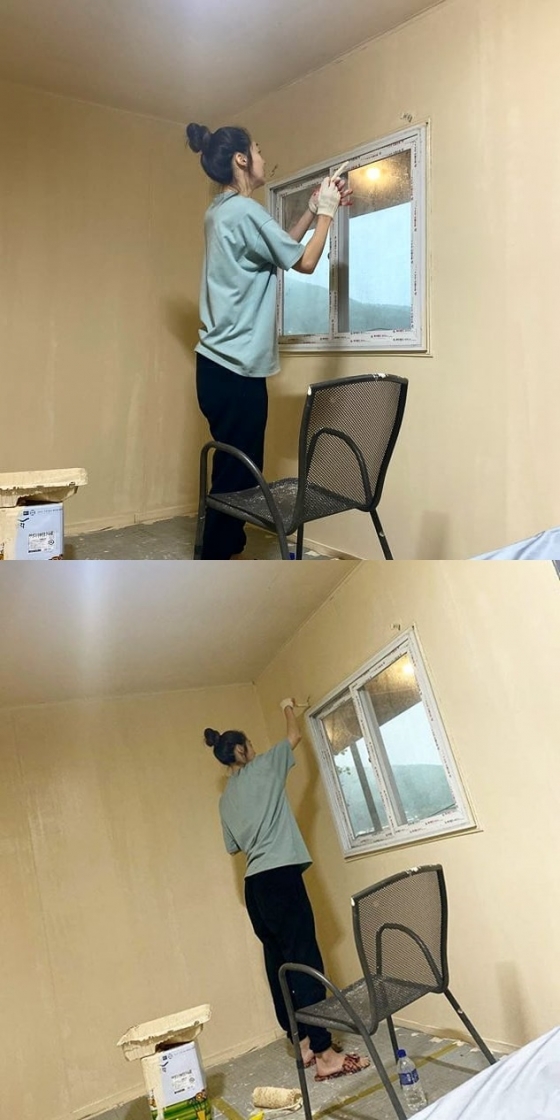 공개된 사진 속 최여진은 창문틀을 페인트칠하고 있다. 꼼꼼하게 바르는 모습에서 신중함이 느껴진다.
