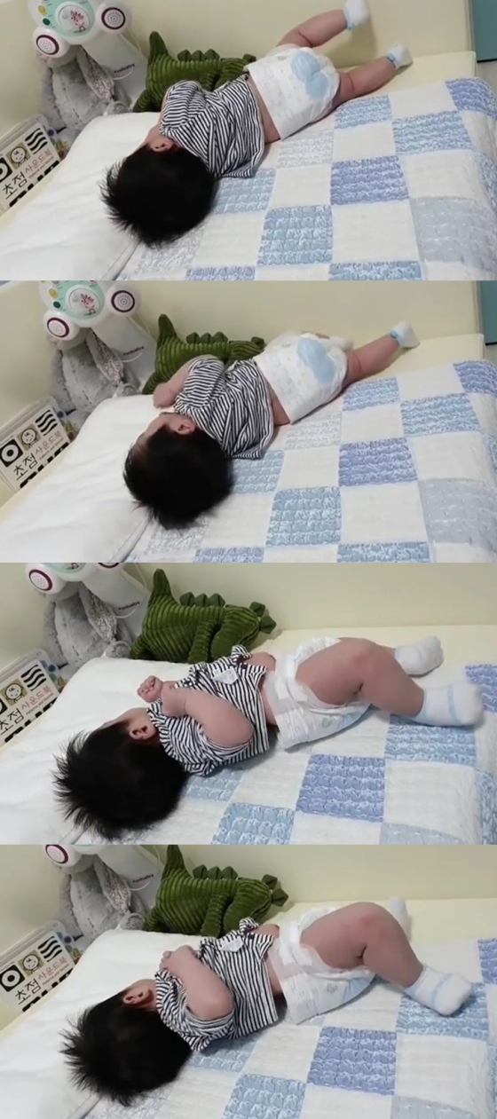 공개된 영상 속에는 정정아의 아들 하임 군이 담겨 있다. 하임 군은 용을 쓰며 뒤집기를 시도하고 있다.