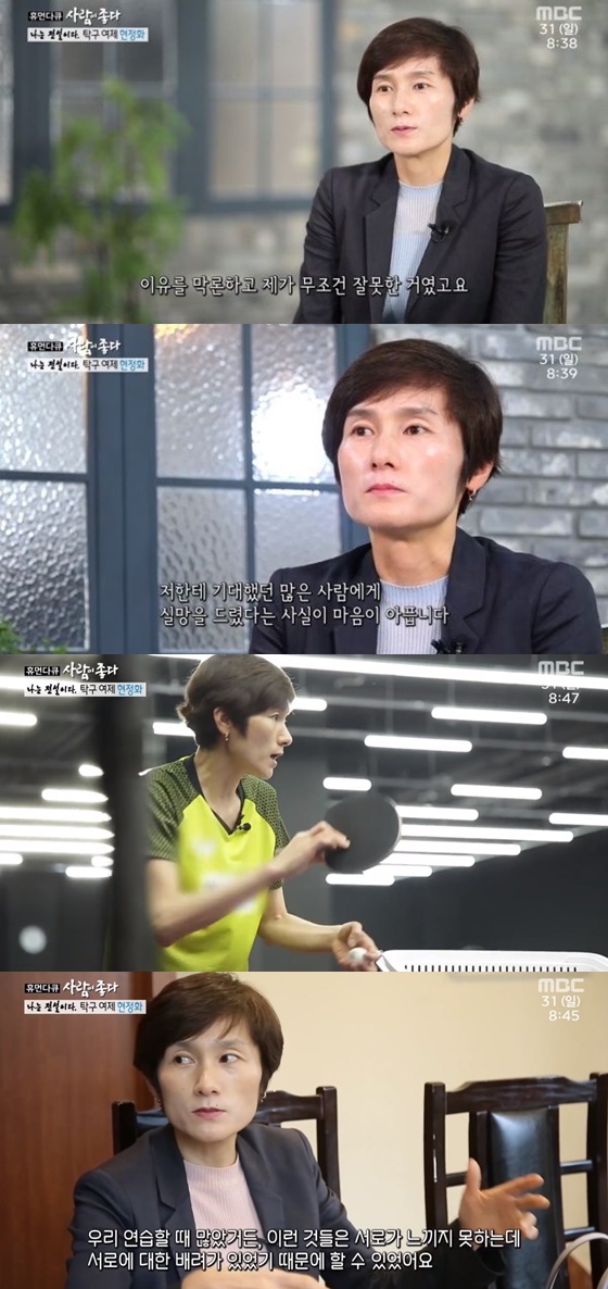 현정화는 31일 방송된 MBC 교양프로그램 '휴먼 다큐 사람이 좋다'에 출연해 6년 전 음주운전 사건을 언급하며 "많은 분들에게 죄송했다"고 사죄했다.
