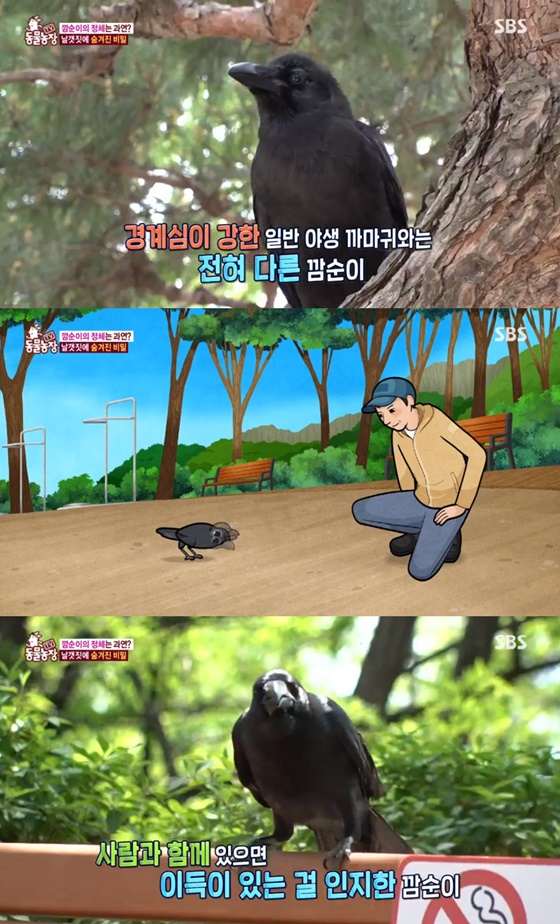 사람들과 친근하게 대하는 깜순이를 본 박병권 한국도시생태연구소장는 "이렇게 까마귀를 편하게 보는 건 처음"이라며 "진짜 막역한 사이가 아니면 불가능한 행동"이라고 신기해했다.