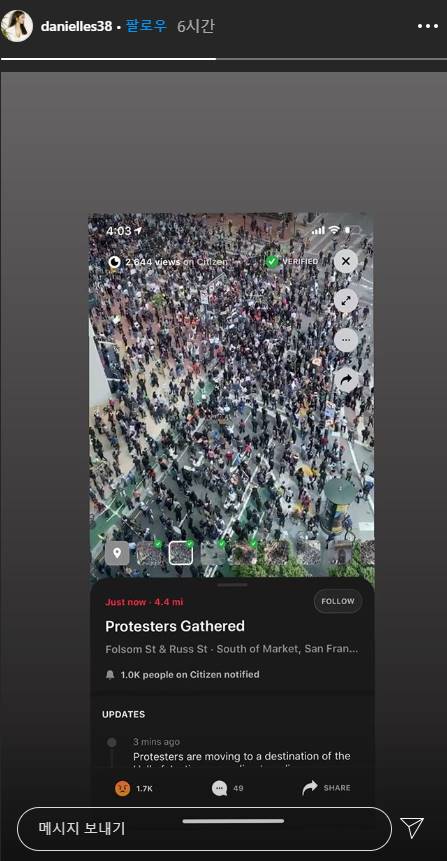 서동주는 1일 자신의 인스타그램 스토리에 '시위 현장'이란 현장 상황이 담긴 글을 캡처해 공유했다.