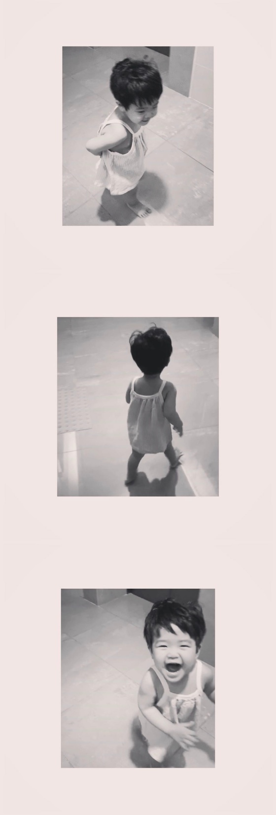김효진은 18일 자신의 인스타그램에 "문 열면 복도로 돌진하는 둘찌. 이유식을 잘 안 먹어서 걱정했는데 이제 밥도 꿀꺽꿀꺽 잘 먹는다. 루이 14개월"이라는 글과 함께 사진을 게재했다.