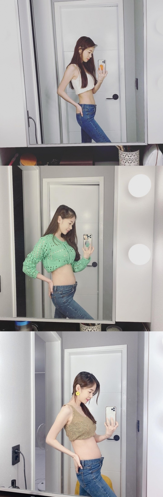 김보미는 지난 18일 자신의 인스타그램에 "여러분들 저도 배 나와요. 첫 번째 사진은 10주, 두 번째 사진 13주, 세 번째 사진 16주입니다. #임산부 #보미전일 #초보 임산부 #아들"라는 글과 함께 세 장의 사진을 게재했다.